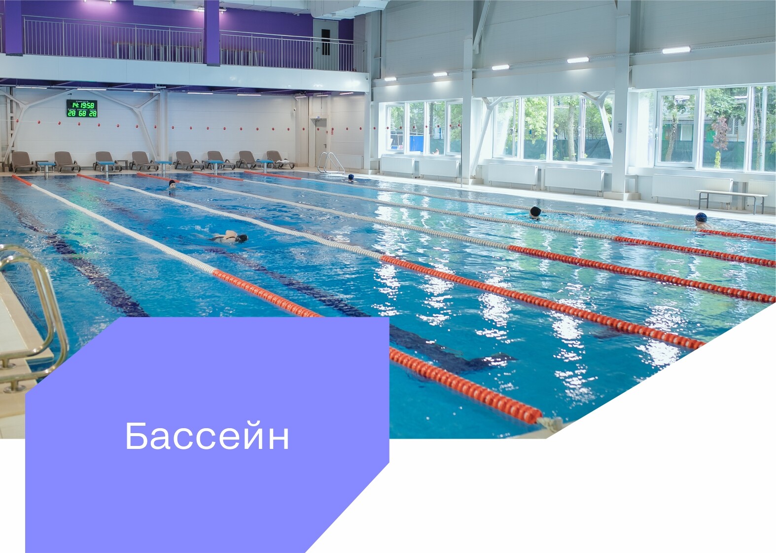• 6 дорожек (длина каждой – 25 м, ширина – 2,4 м)
